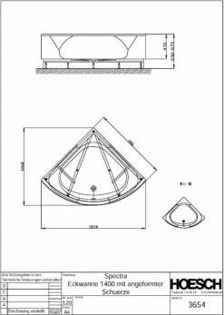 Hoesch Baignoire D'angle Spectra 3654.010 Blanc, 140x140cm Avec Tablier Intégré