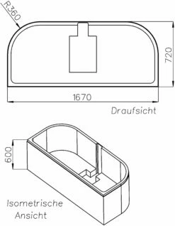Schedel Match0 SW10040 160x70cm, Pied Gauche, Hauteur 55.5cm