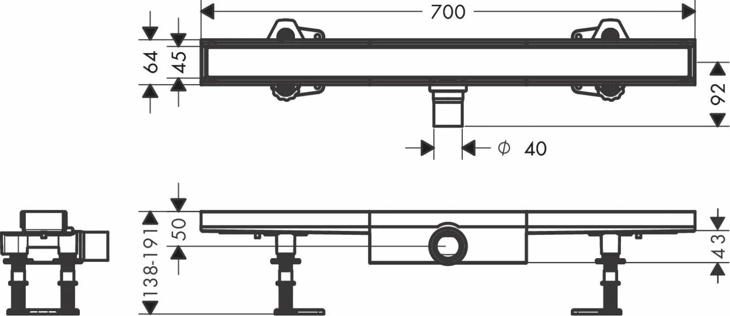 hansgrohe RainDrain Compact set complet caniveau de douche 56165000