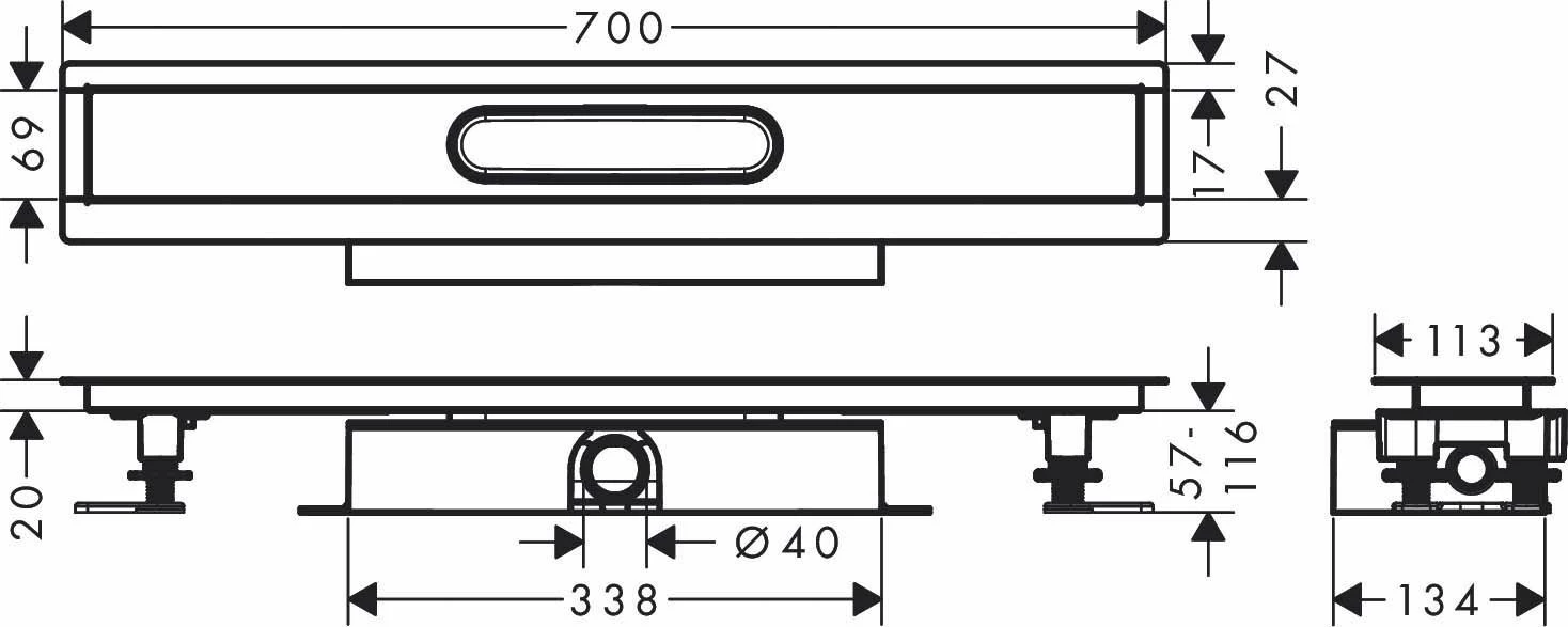 - Corps de base universel adapté à tous les ensembles de finition RainDrain Rock et RainDrain Match
