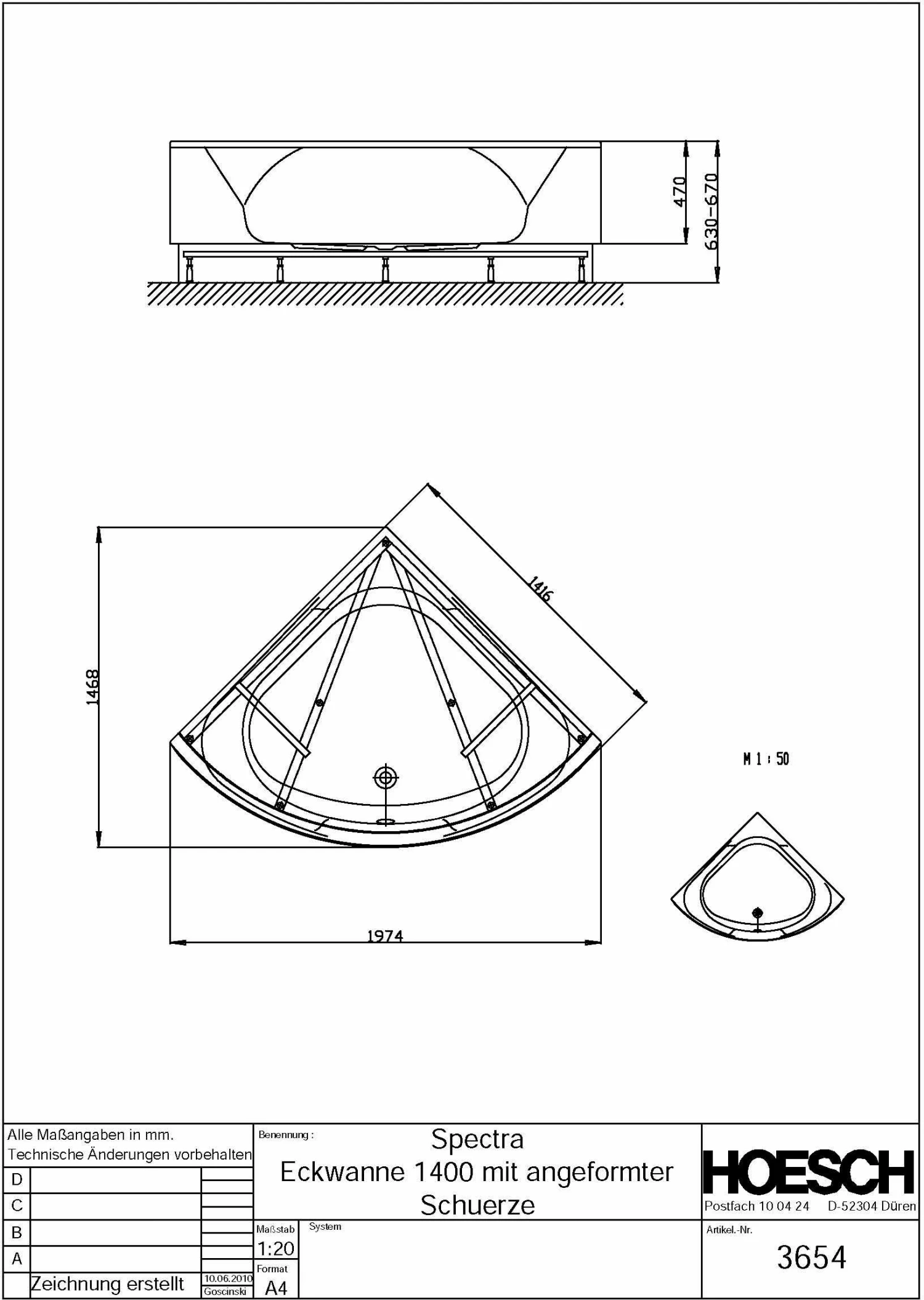 - baignoire Hauteur d’installation: 630-670 mm
