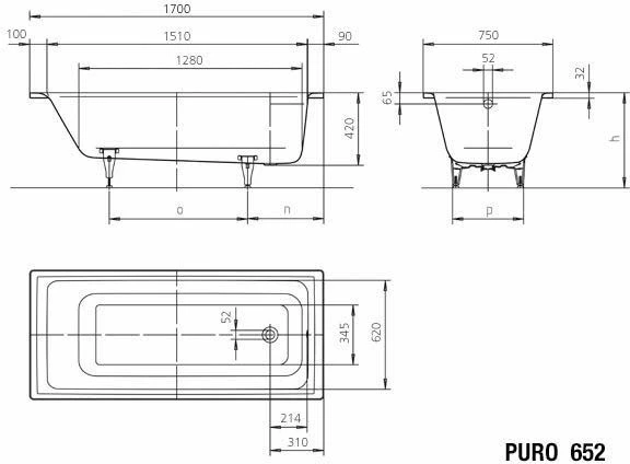 Kaldewei Baignoire Vaio Set 954 233400010001 170 X 75 X 43 Cm