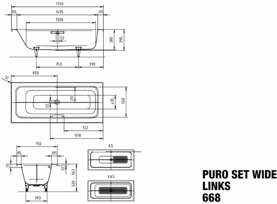 Kaldewei Baignoire Vaio Set 954 233400010001 170 X 75 X 43 Cm