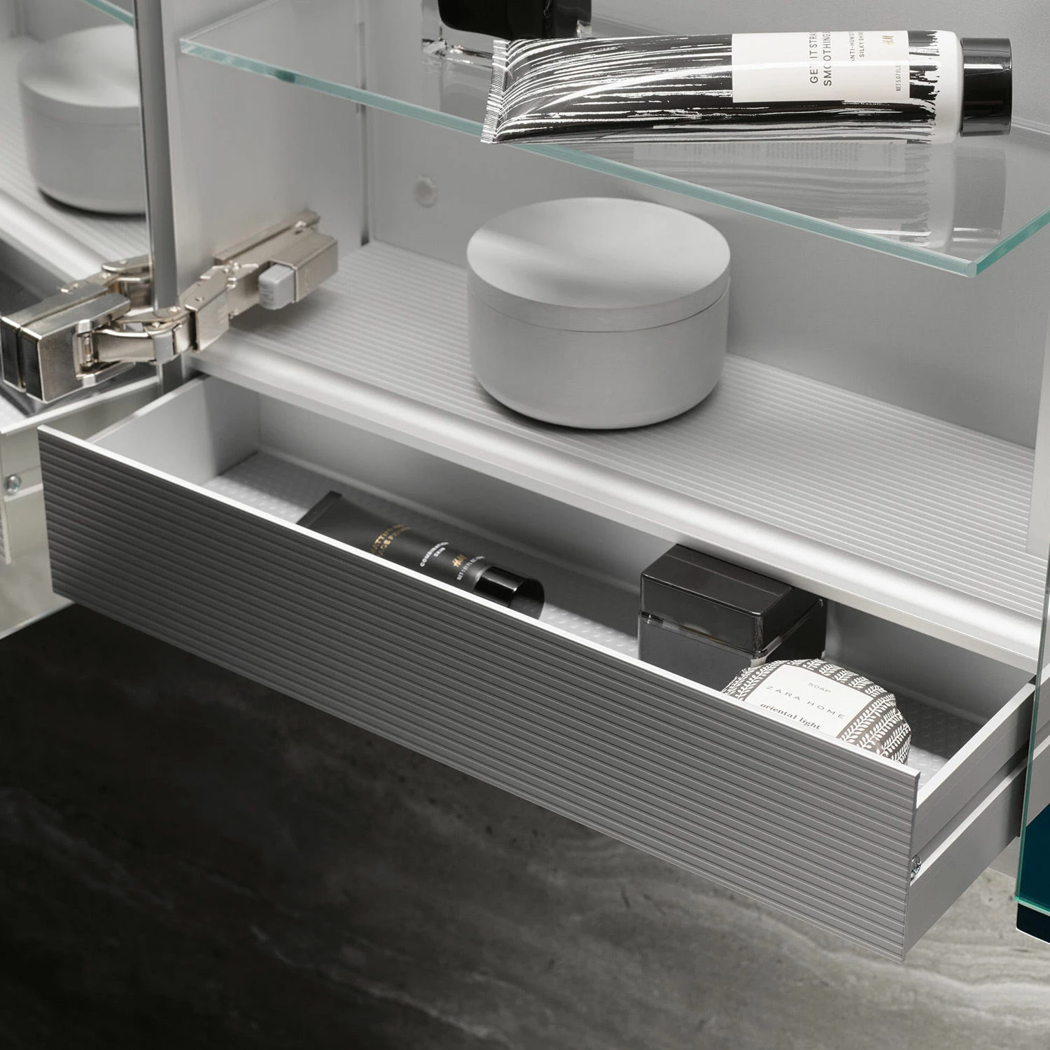 - 2 portes tournantes avec miroir en cristal double face et charnières à fermeture douce