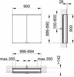 Keuco Royal Modular 2. 1930 800200091100000 900 X 900 X 160 Mm, Sans Prise, Encastré Mural, 2 Portes