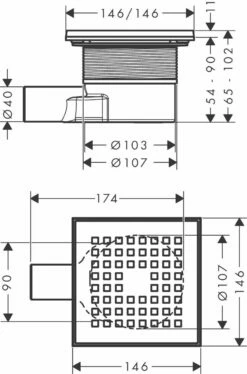 Hansgrohe RainDrain Point Set Complet 56246800 Bonde Ponctuelle, 100 X 100 Mm, Acier Inoxydable Brossé