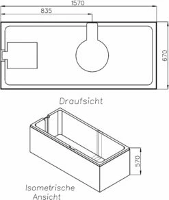 Schedel XL Villeroy & Boch Loop & Friends Support De Baignoire Solo SW16016 160x70cm, Hauteur 57cm