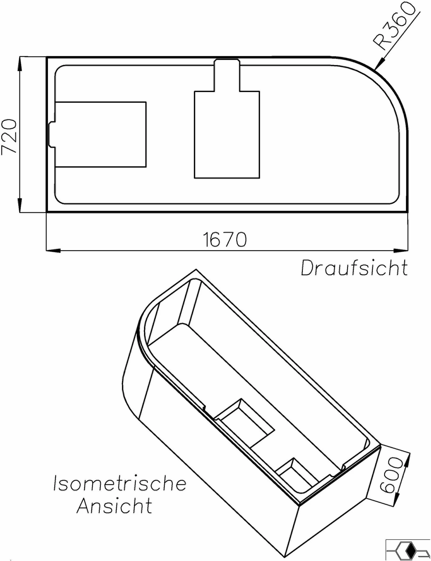 Schedel XL Villeroy & Boch Loop & Friends Support De Baignoire Solo SW16016 160x70cm, Hauteur 57cm