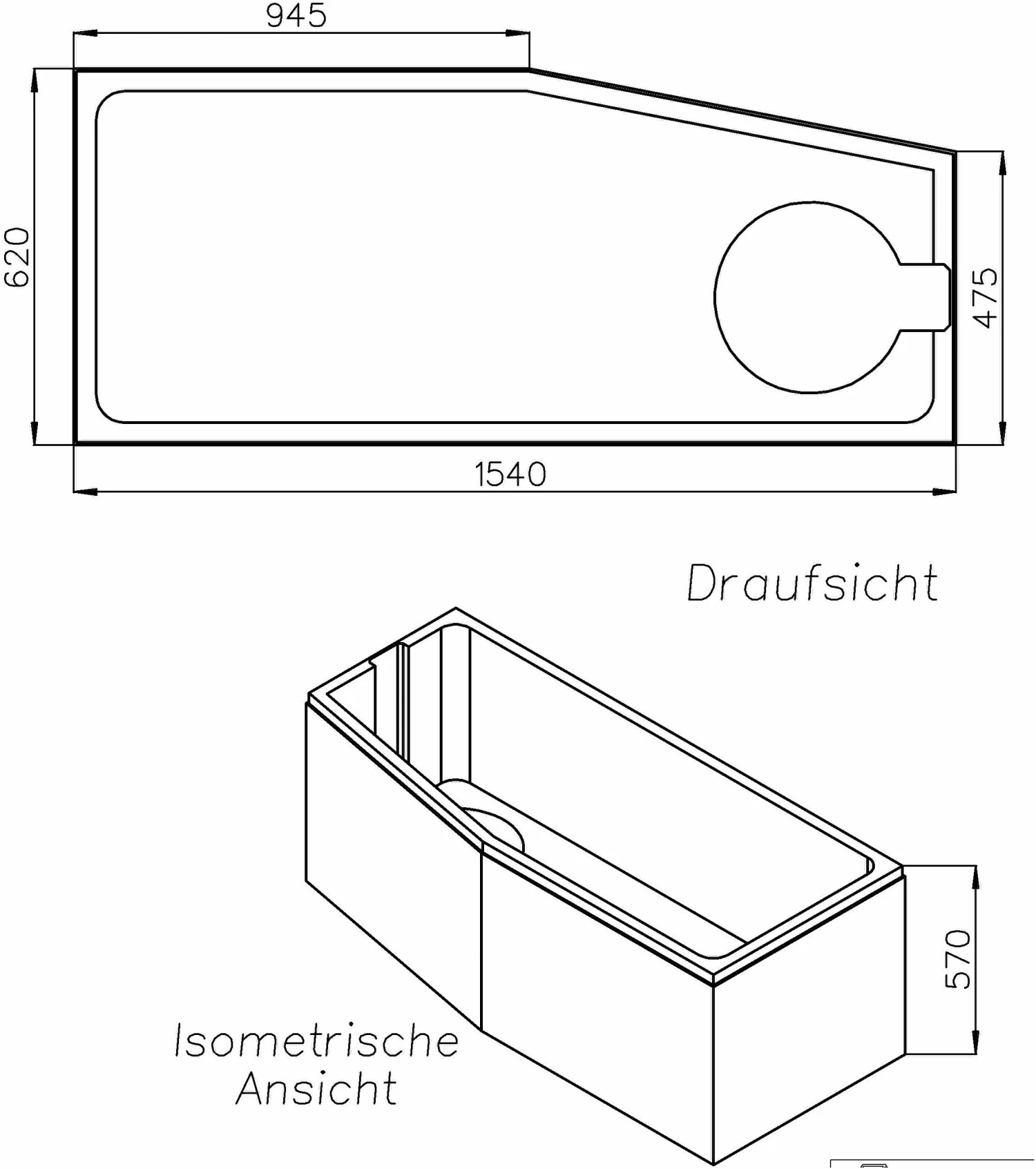 Schedel Hoesch Support De Bain Parana SW14305 150x100cm, Gauche, Affleurant, Hauteur 57cm