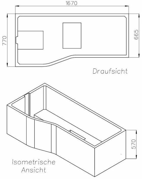 Schedel XL Villeroy & Boch O.Novo Solo Support De Baignoire SW14717 170x75cm, Hauteur 61cm