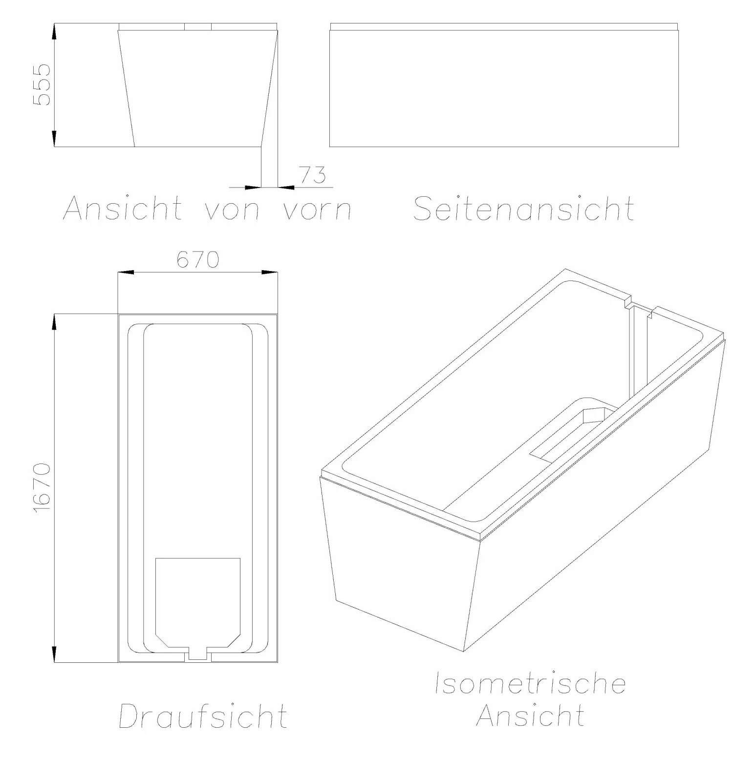 Schedel XL Villeroy & Boch Loop & Friends Support De Baignoire Solo SW16016 160x70cm, Hauteur 57cm