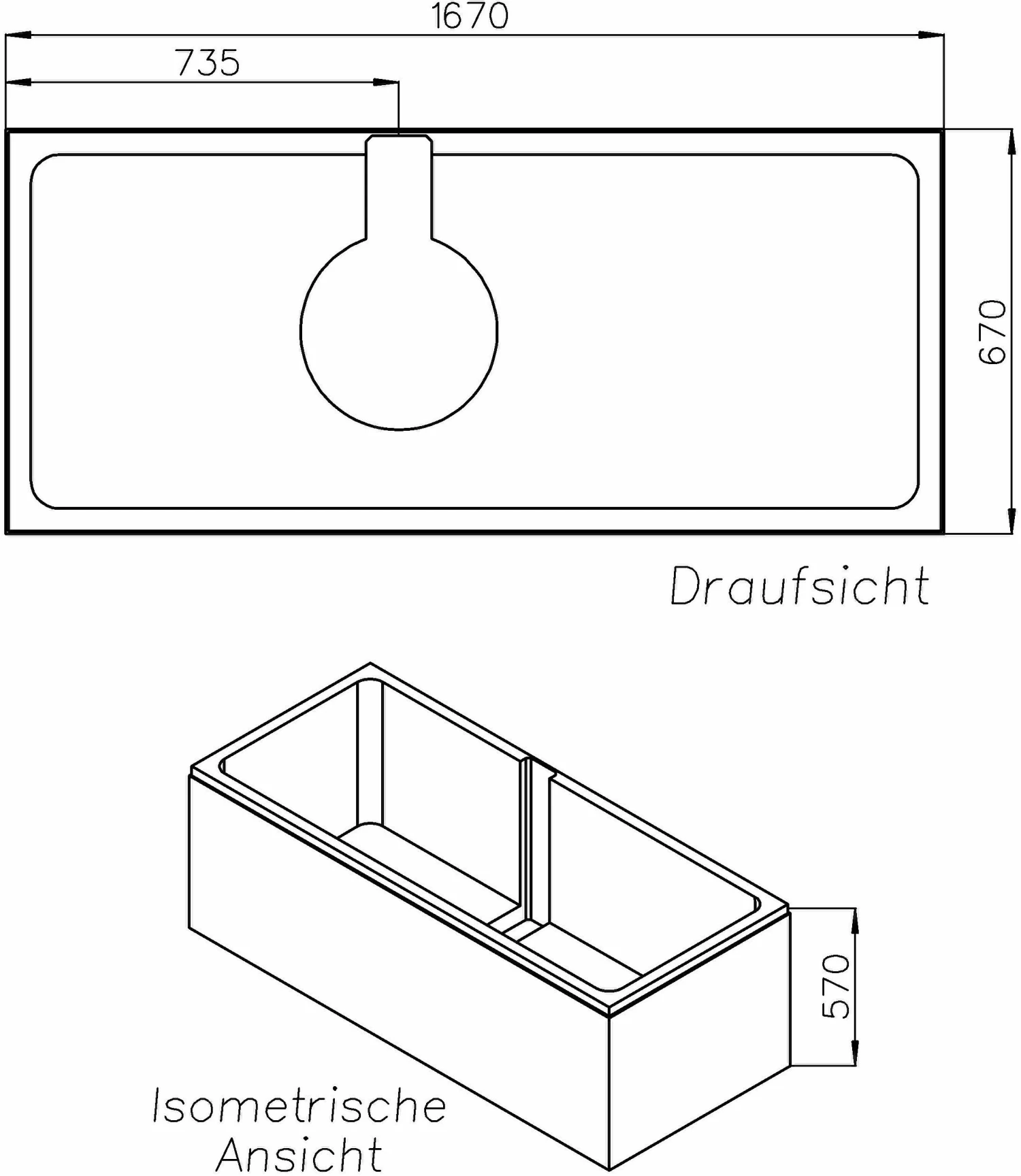 Schedel XL Villeroy & Boch Loop & Friends Support De Baignoire Solo SW16016 160x70cm, Hauteur 57cm