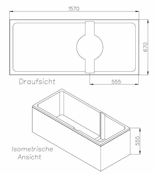 Schedel XL Villeroy & Boch Loop & Friends Support De Baignoire Solo SW16016 160x70cm, Hauteur 57cm