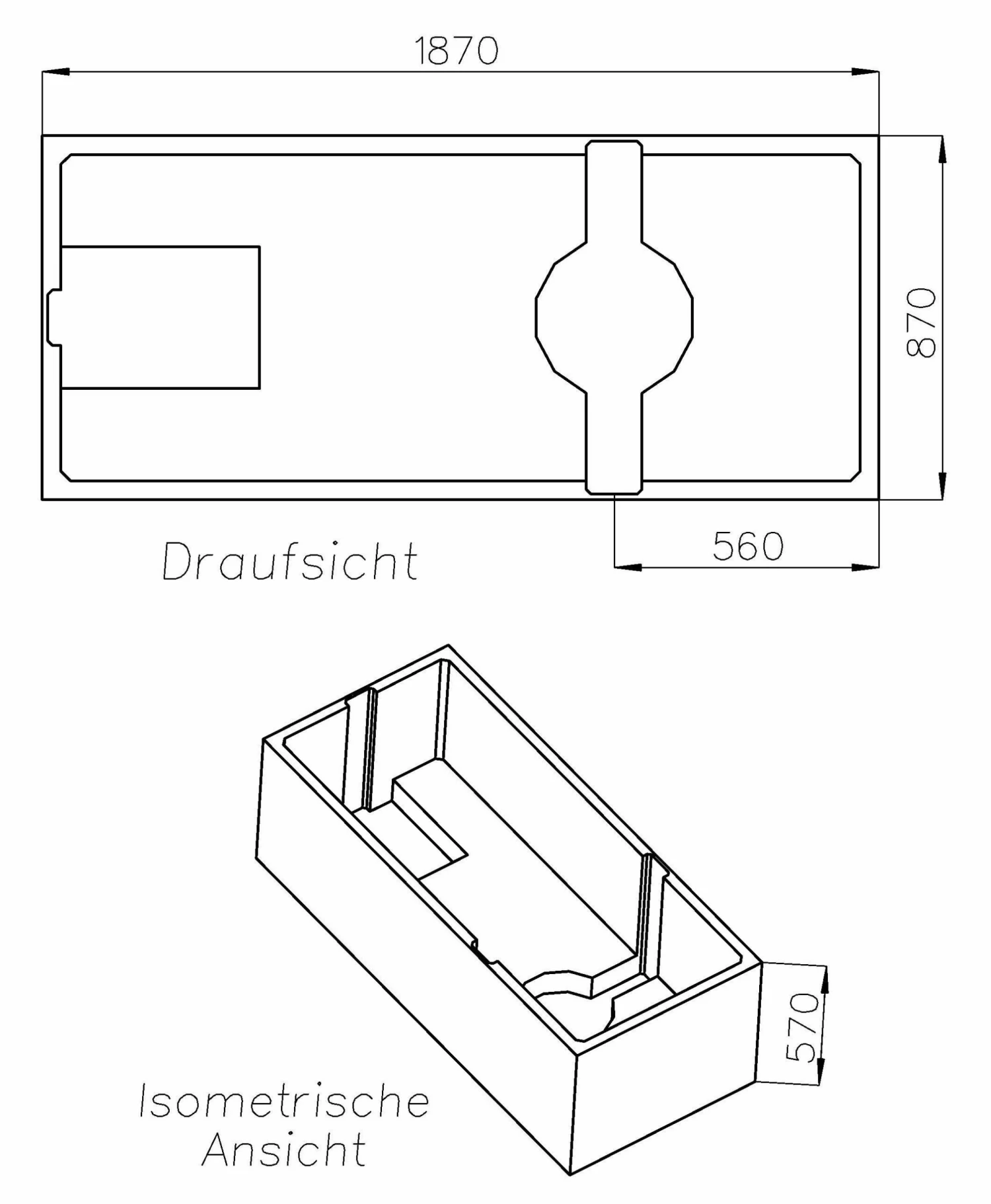 Schedel XL Villeroy & Boch O.Novo Solo Support De Baignoire SW14717 170x75cm, Hauteur 61cm