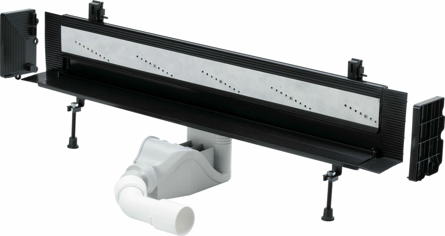 - Equipement: jeu de pieds réglable, 4 bouchons, jeu de déchets auto-nettoyant, bordure de carrelage flexible, tamis amovible, outil de contrôle et de protection des carreaux, brosse de nettoyage, bride d’étanchéité, accessoires d’étanchéité, aide au sciage