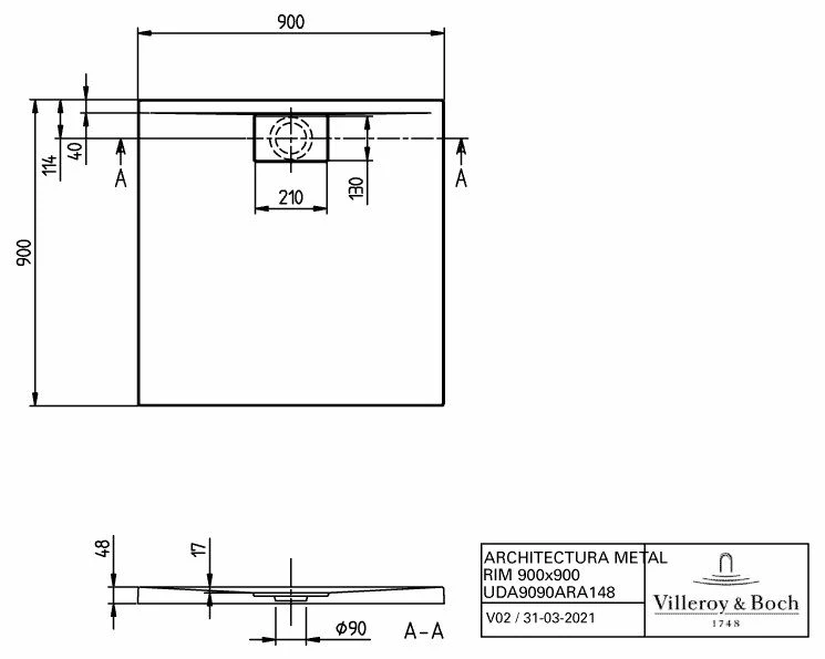 Villeroy Und Boch Architectura Metalrim Douche A1590ARA215GV01 Blanc , 150x90x1.5cm, Anti-dérapant